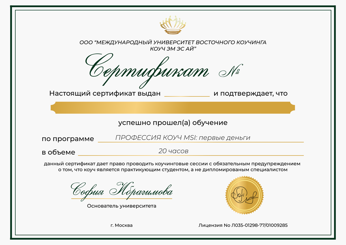 + СЕРТИФИКАТ о прохождении курса государственного образца